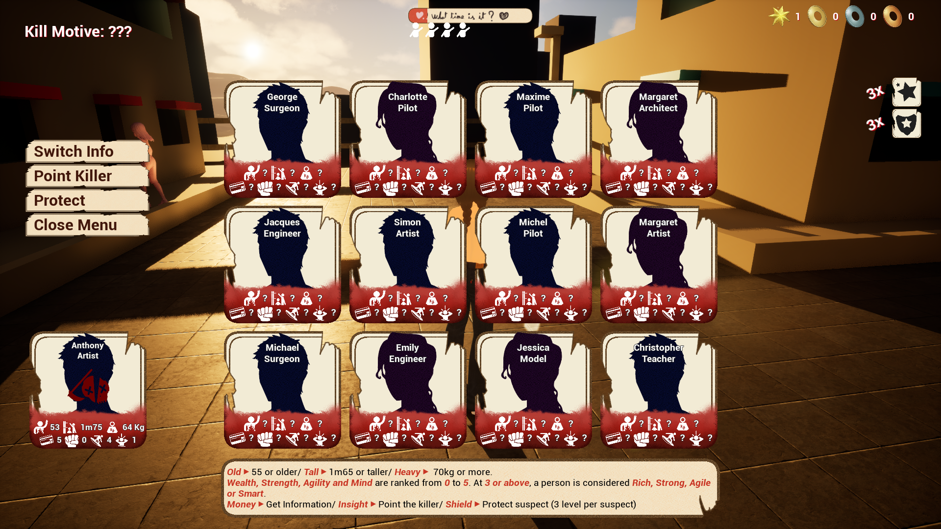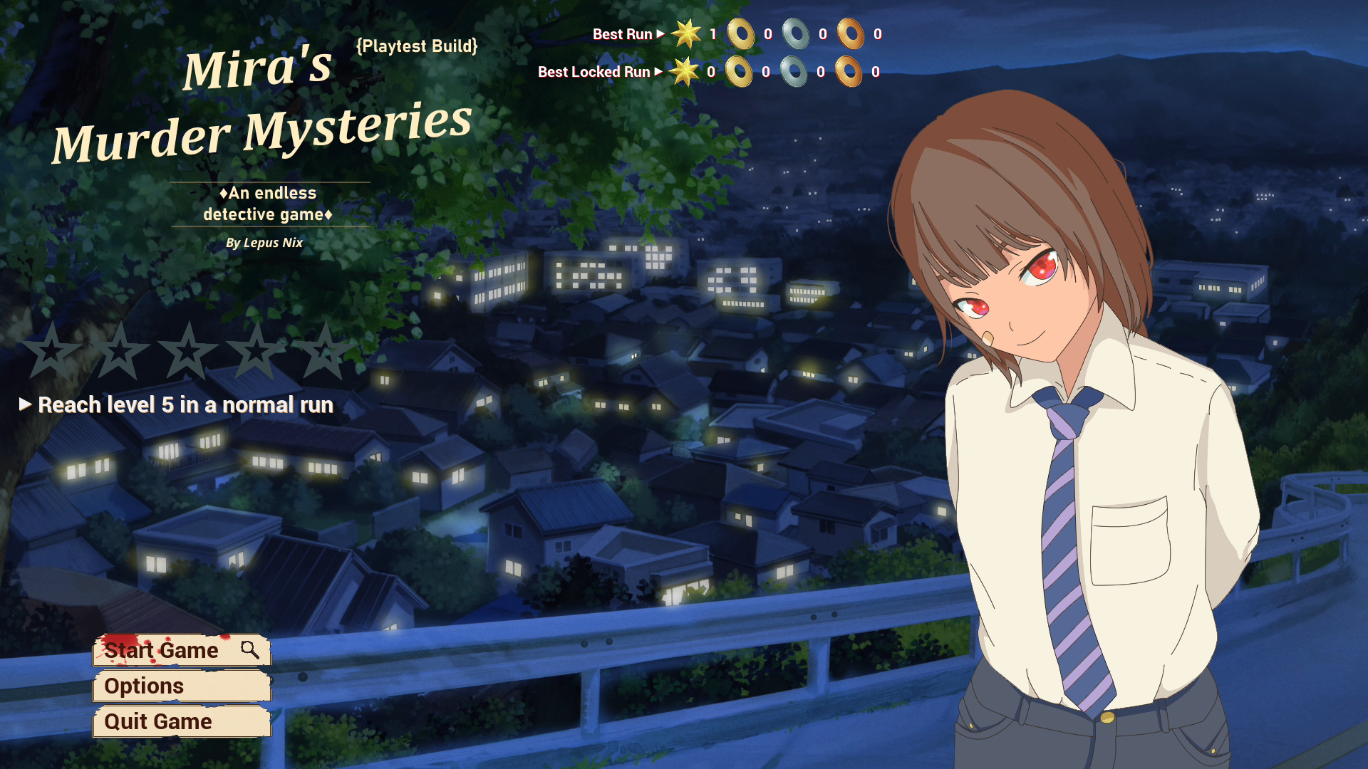 Mira's Murder Mysteries is an endless detective game where the player has to find the killer before he finishes his kill list. Solve multiple crimes, become a five star detective and show off to your friends in this original CHALLENGING game!