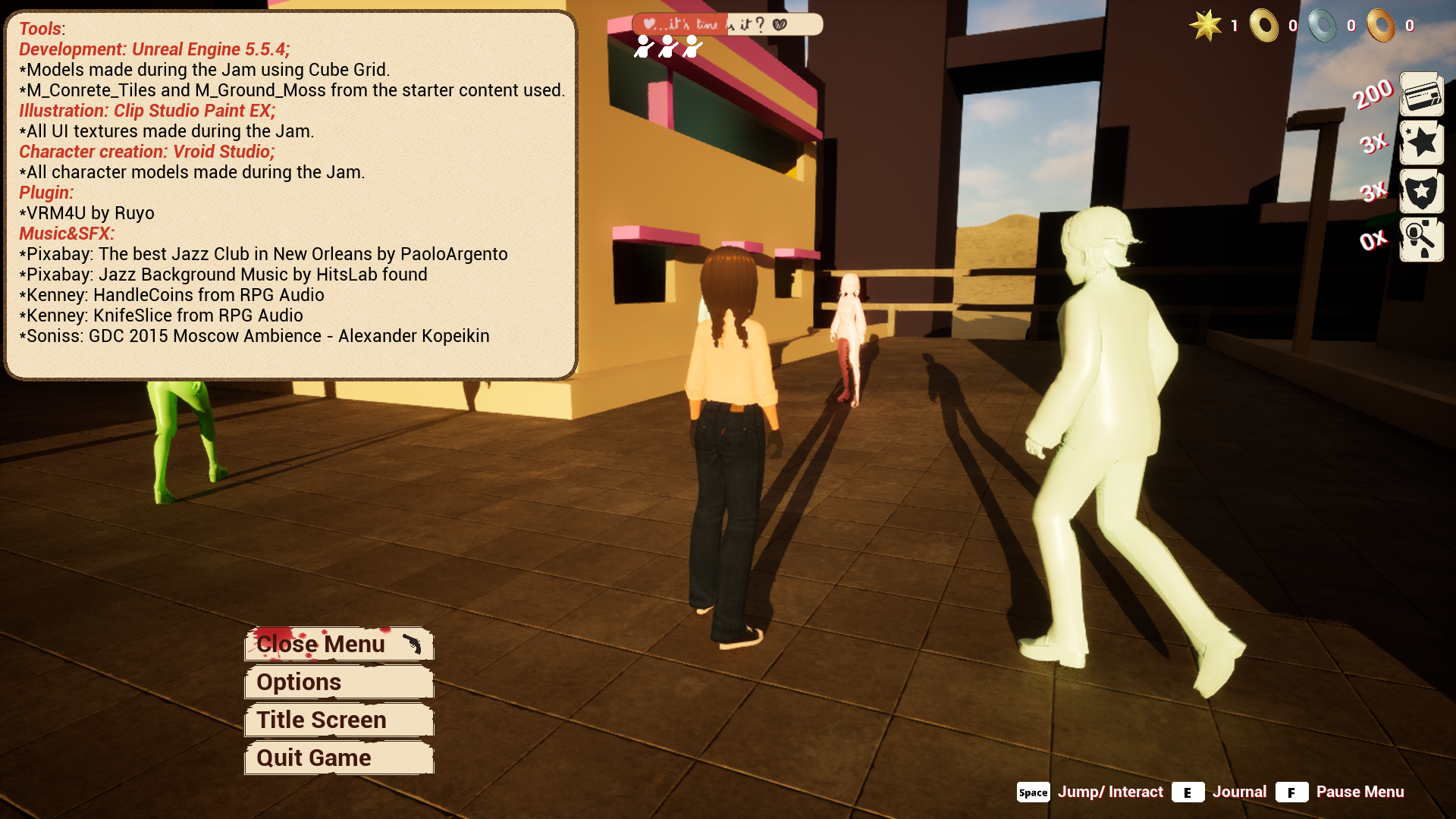 Seeing my previous games, even those made on rpg maker, you can really see how much I have evolved since and were I am going. The road is still long but it's getting there - The Anjara project-. During the Jam, I dropped a lot of ideas but I believe it was for the best for this game. There are some ideas that I am still planning to bring though.Optimization was another thing I dropped hahaha, I started by trying to use soft references and other corresponding workflows I learned while making my previous projects but my time was running out and playtesting it would just take more of my time. Also the goal was just to get 60 FPS on my 1070 and that goal was achieved.